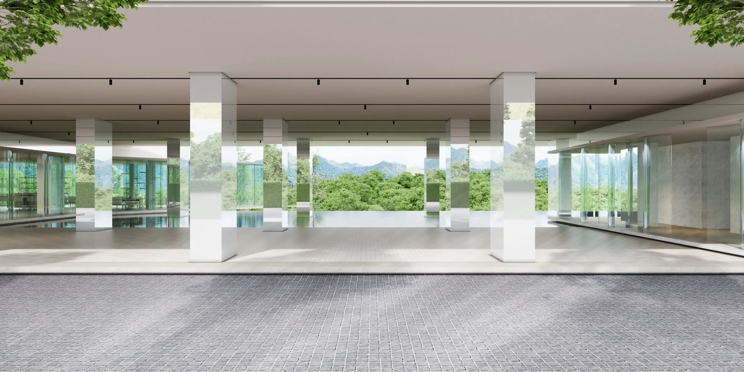 Hệ ô văng được bổ sung như một lớp trung gian điều tiết khí hậu, giúp che chắn bức xạ mặt trời mà vẫn đảm bảo tầm nhìn và sự thông thoáng cho từng phòng nghỉ. Yếu tố mặt nước được lồng ghép xuyên suốt công trình, nơi các ô văng trở thành những mặt hồ cạn phản chiếu bầu trời, tạo nên sự đối thoại tự nhiên giữa kiến trúc và cảnh quan. Các hồ nước này vừa là thủ pháp thẩm mỹ, vừa đóng vai trò kỹ thuật trong việc giảm bức xạ nhiệt và làm mát không gian. Hình ảnh mặt nước gợn sóng phản chiếu, kết hợp với nhịp điệu của địa hình đồi núi, tạo ra sự cộng hưởng tinh tế, làm nổi bật đường cong tự nhiên của cảnh quan xung quanh.